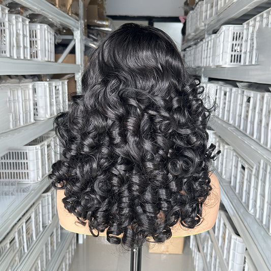 SendeHair Natural Black Bouncy Curl 4x4 Lace Closure Wig Human Hair Wigs For Black Women